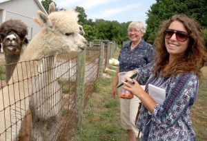 Christie Rotondo (foreground) reporting an alpaca story this summer for the Gazette Newspapers of Cape May County, NJ