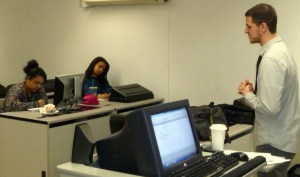 Recent Purchase Graduate, Phil Corso, returned to the hallowed halls of the Humanities building to visit Prof. Donna Cornachio’s Journalism One class Tuesday morning.