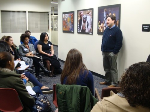 Journal News Local Content Editor Joe McDonald Talking to Purchase Students. photo courtesy of Kim Whitehead