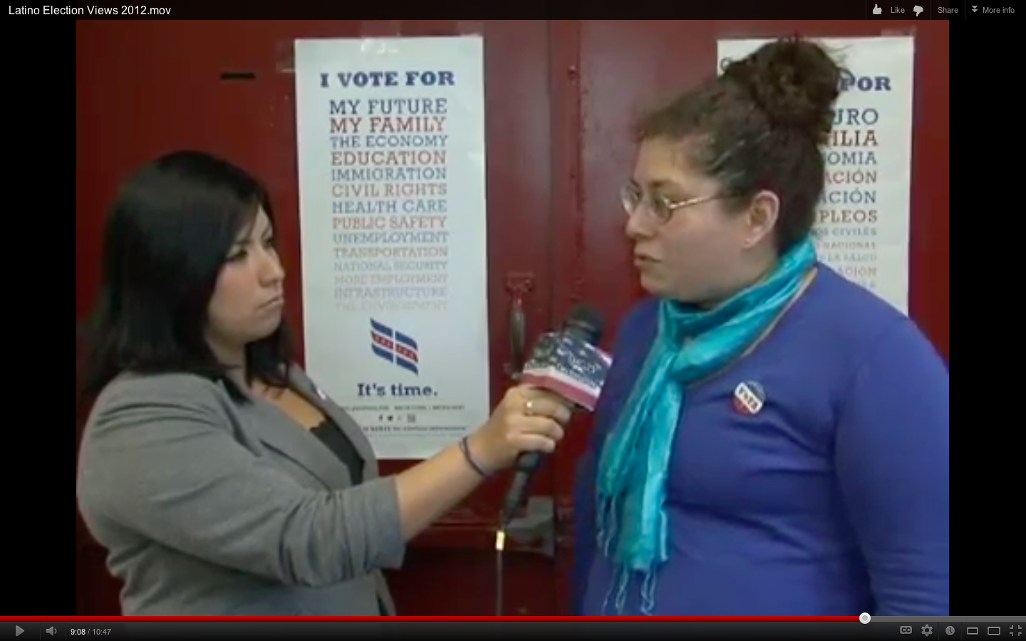 That right there is SUNY Purchase Journalism student, Sheyla Navarro, looking extremely professional in a wonderful piece she did for Larchmont Mamaroneck Community Television LMC-TV on Latino reaction to the presidential election.