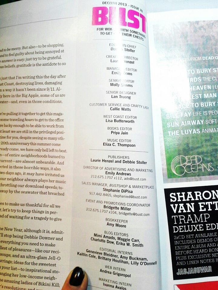 When SUNY Purchase Senior Brittany Houlihan started her internship at BUST magazine at the start of this semester she had no idea it would “result in a freelance piece, a credit in the masthead, over 30 blog posts, and a lot of experience.”