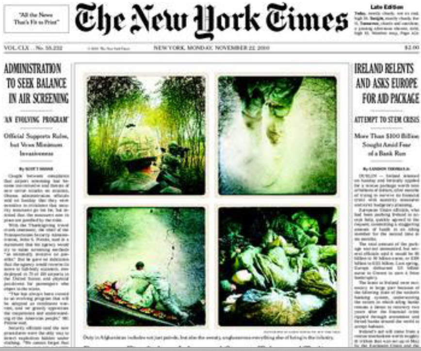 In 2010 the Times ran on its front page photographs of soldiers in Afghanistan taken by Damon Winter using an iPhone app called Hipstamatic.