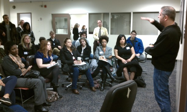 Journal News Investigative Reporter Jorge Fitz-Gibbon talking to Purchase Journalism Students